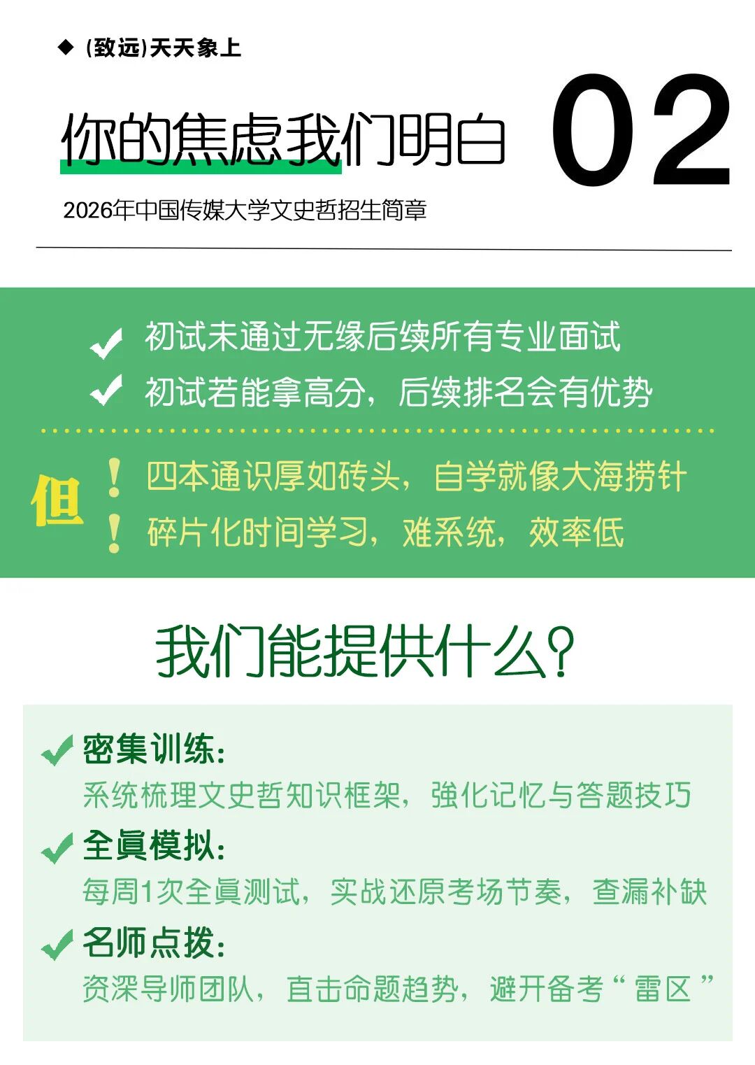 艺考生注意啦: 无数个日夜,你苦练专业技能,以为梦想触手可及。但中国传媒大学2025年的初试数据,给所有艺考生敲响了警钟:30000 人报名,13500 余人通过初试,有近55%的考生直接被拒之门外,通过率仅为45%。这意味着,有16500 名和你一样怀揣梦想的同学,连展示专业能力的机会都没有获得,就倒在了“文史哲”这一关前。